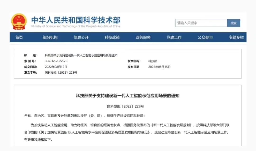 科技部首批支持建設(shè)十個新一代人工智能示范應(yīng)用場景
