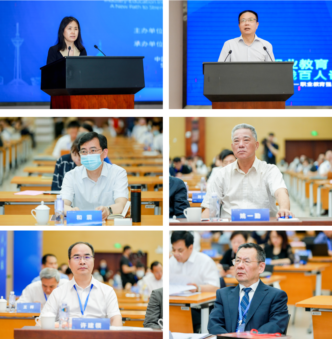 中國(guó)職業(yè)技術(shù)教育學(xué)會(huì)會(huì)長(zhǎng)、教育部原副部長(zhǎng)魯昕出席論壇并致辭,她指出,百人論壇的發(fā)展定位在于搭建平臺(tái)型智庫(kù),打造智庫(kù)學(xué)會(huì)聚集各方優(yōu)秀人才平臺(tái)、有能力服務(wù)教育部黨組職教決策智庫(kù)、有智慧總結(jié)提煉職教實(shí)踐案例庫(kù)、有利于發(fā)現(xiàn)培養(yǎng)青年教師人才庫(kù)、有助于講好中國(guó)職教故事新載體。在主旨演講環(huán)節(jié),魯昕以《聚集各界力量,共同推進(jìn)職業(yè)教育高質(zhì)量發(fā)展》為題,從歷史方位職教定位、改革發(fā)展目標(biāo)思路、實(shí)施改革主要任務(wù)、落實(shí)任務(wù)重要舉措、深化體系改革定位五個(gè)方面,對(duì)“強(qiáng)國(guó)建設(shè),職教何為”進(jìn)行了深刻解讀。魯昕指出,現(xiàn)代職業(yè)教育要堅(jiān)持面向世界科技前沿、面向經(jīng)濟(jì)主戰(zhàn)場(chǎng)、面向國(guó)家重大需求、面向人民生命健康,為世界職業(yè)教育發(fā)展提供中國(guó)實(shí)踐、中國(guó)智慧、中國(guó)方案。要堅(jiān)持“跳出職教看職教”,深化產(chǎn)教融合、促進(jìn)產(chǎn)教互動(dòng),實(shí)現(xiàn)政行校企共同進(jìn)步、共同成長(zhǎng)、共同發(fā)展,有效解決產(chǎn)業(yè)經(jīng)濟(jì)發(fā)展中的難點(diǎn)、堵點(diǎn)、痛點(diǎn)等問(wèn)題,提升制造業(yè)核心競(jìng)爭(zhēng)力,助力我國(guó)由制造大國(guó)向制造強(qiáng)國(guó)邁進(jìn)。要促進(jìn)科教融匯,重塑職業(yè)院校人才培養(yǎng)定位,提升科技成果轉(zhuǎn)化和產(chǎn)業(yè)化水平。要在中國(guó)式現(xiàn)代化建設(shè)尤其是制造強(qiáng)國(guó)建設(shè)實(shí)踐中,凝練職教案例、總結(jié)職教經(jīng)驗(yàn),講好中國(guó)職教故事,充分展現(xiàn)現(xiàn)代職業(yè)教育服務(wù)人的全面發(fā)展和產(chǎn)業(yè)經(jīng)濟(jì)發(fā)展的“中國(guó)實(shí)踐”。